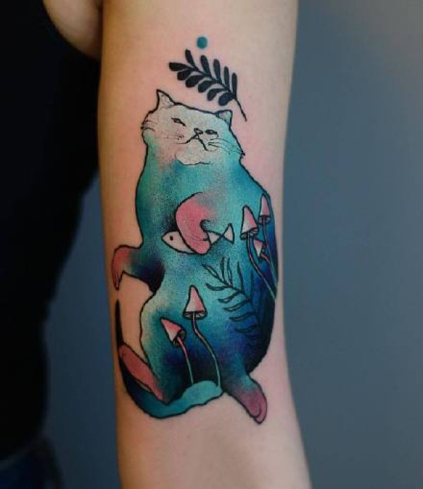 色彩斑斓的一组猫喵纹身作品图片