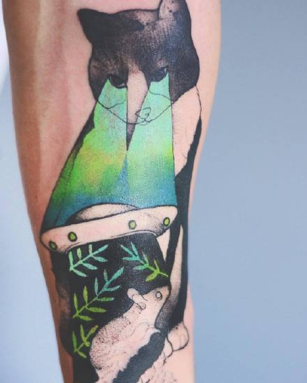 小清新猫纹身:狠可爱的一组小清新猫纹身图案