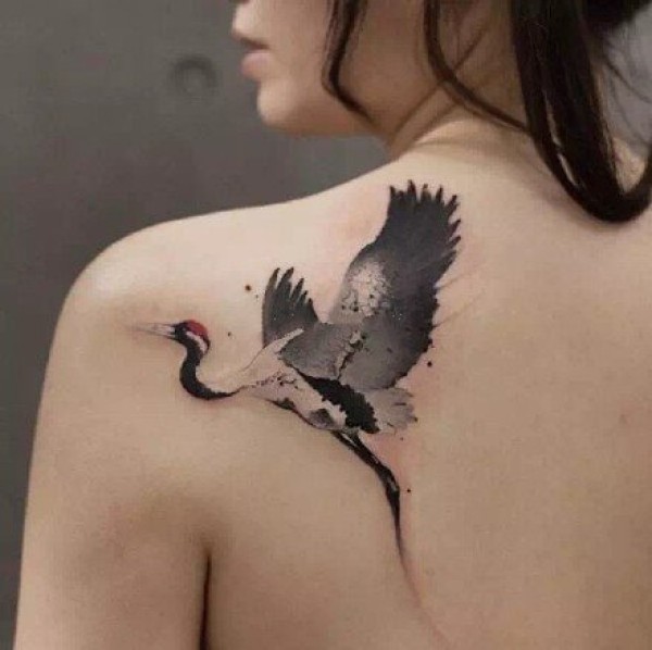 仙鹤纹身 9张水墨中国风的仙鹤纹身图片