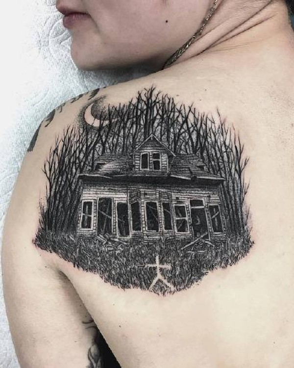 欧美暗黑风格的一组深黑色点刺纹身作品