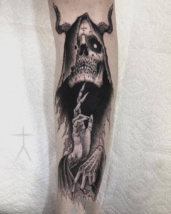暗黑纹身图案--16张暗黑风格的手臂和腿部的纹身图案