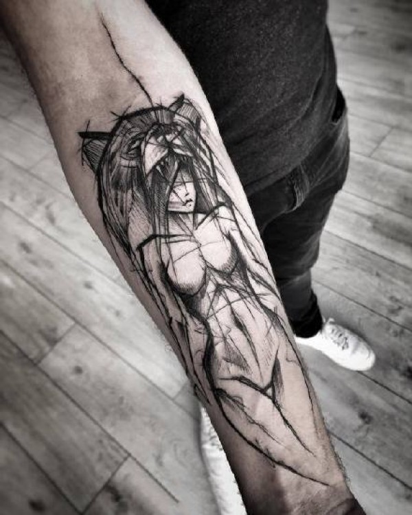 手臂纹身素材 多款简单线条纹身素描手臂纹身图片