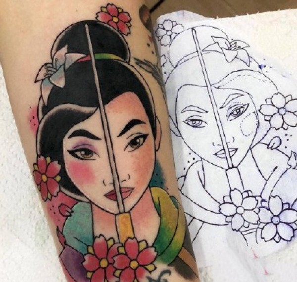 复古卡通红唇美女手臂纹身_卡通纹身图案大全_纹身图吧
