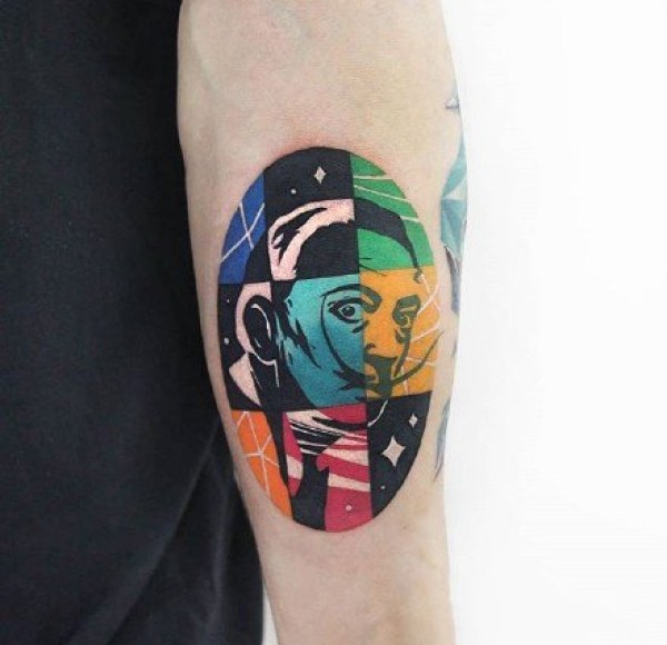 一组彩色拼接风格的个性纹身图