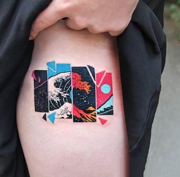 一组彩色拼接风格的个性纹身图