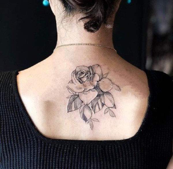 肩花纹身--一组适合肩部的黑灰肩花纹身图案欣赏