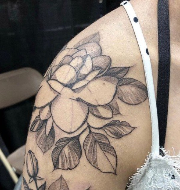 肩花纹身--一组适合肩部的黑灰肩花纹身图案欣赏