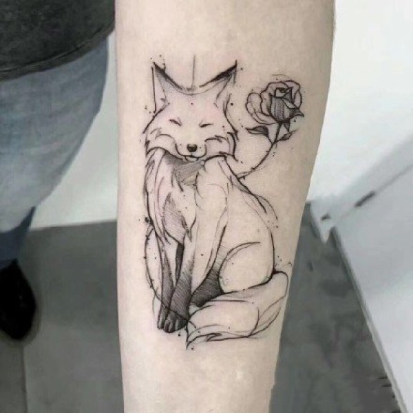 school狐狸玫瑰花纹身图案手稿