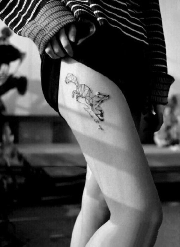 小动物纹身 女生大腿上花朵和狐狸纹身图片