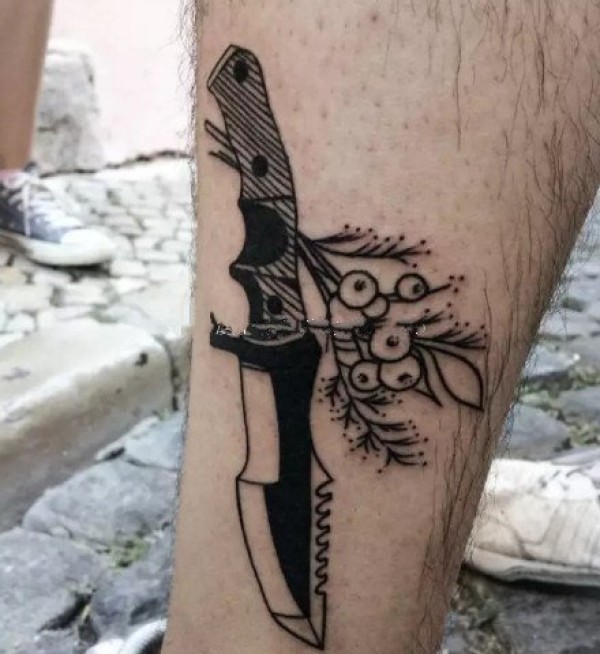 oldschool风格的一组小刀匕首纹身作品