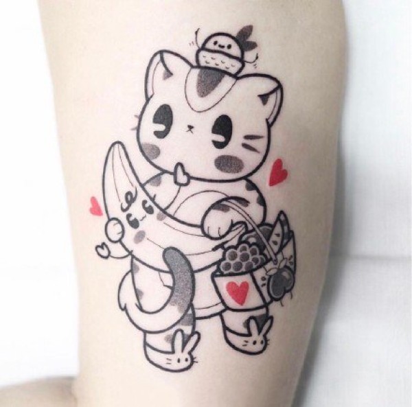 可爱卡通小猫咪纹身--猫露娜与亚提密斯的卡通纹身图案