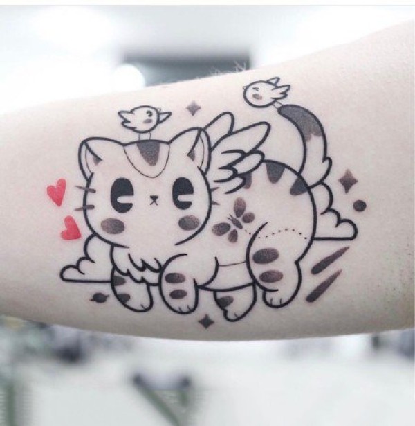 可爱卡通小猫咪纹身--猫露娜与亚提密斯的卡通纹身图案