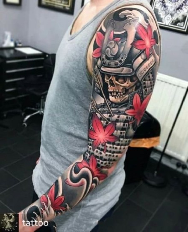 传统风格的一组男性花臂和花腿纹身图案欣赏