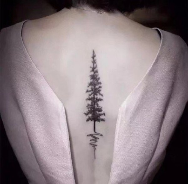 适合女生后背脊椎骨上的漂亮的脊柱纹身