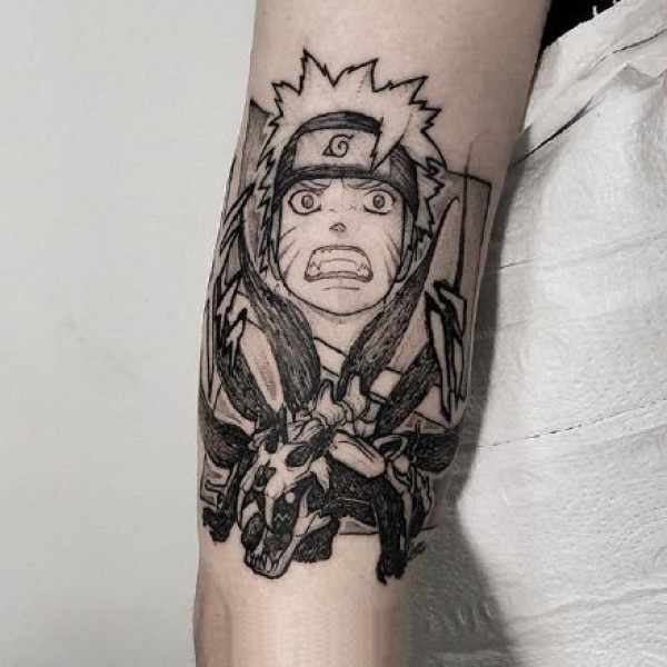 手臂上的火影忍者鸣人佐助卡卡西等角色动漫纹身图案