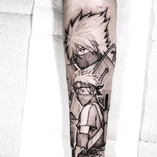 手臂上的火影忍者鸣人佐助卡卡西等角色动漫纹身图案