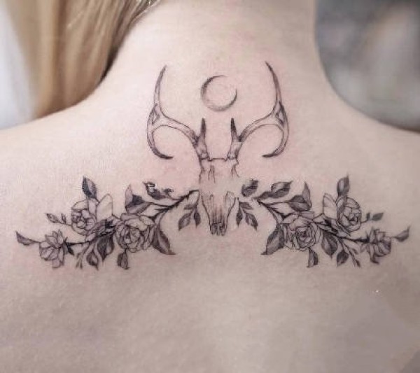 肩花纹身--一组适合肩部的黑灰肩花纹身图案欣赏