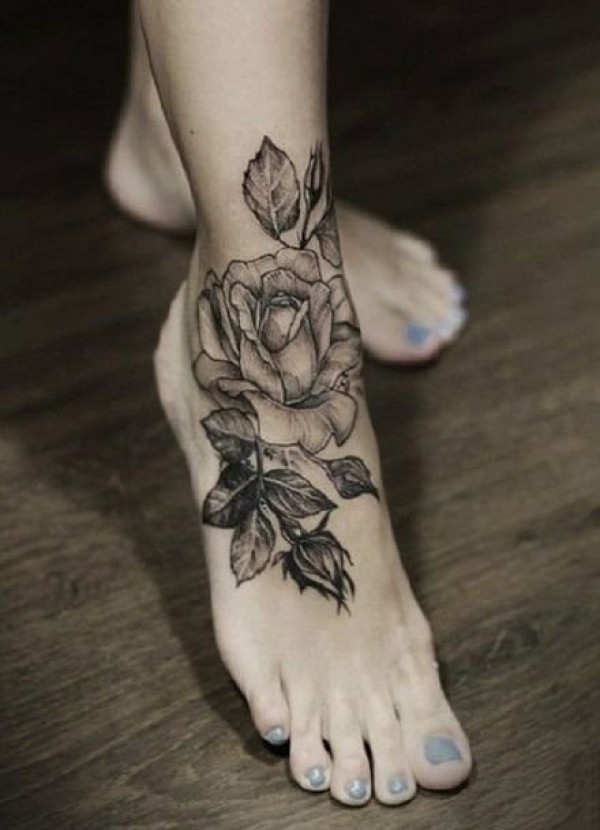 纹在手臂胳膊上的黑灰素花花卉纹身图案欣赏