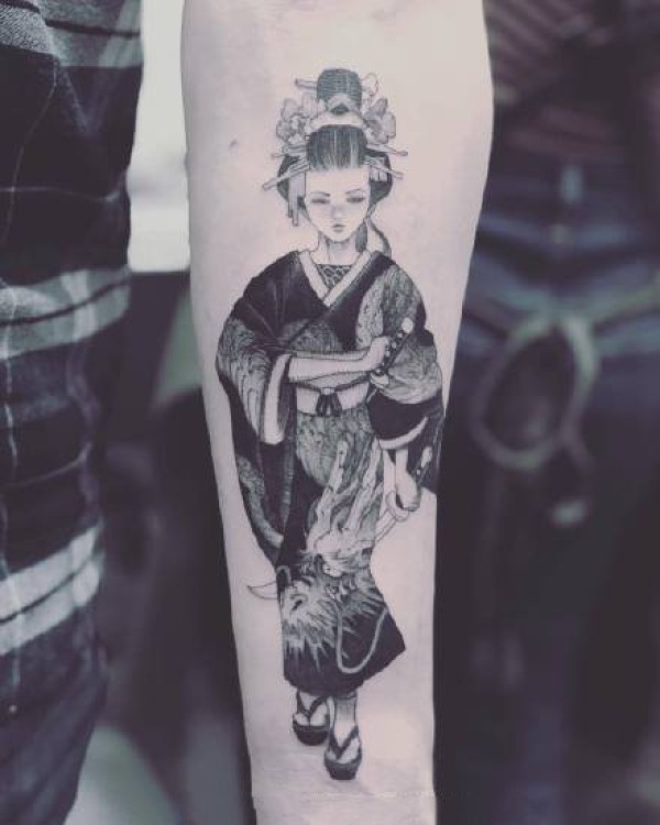 手臂艺伎:9张纹在胳膊上的花旦艺伎纹身图案