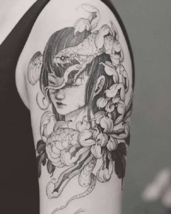艺伎纹身--一组独特创意的日式艺妓纹身图案作品