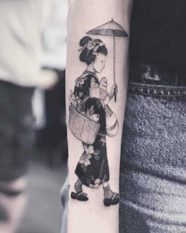 手臂艺伎:9张纹在胳膊上的花旦艺伎纹身图案