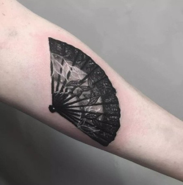 扇子纹身图案 10张彩绘纹身日本艺妓扇子纹身图案