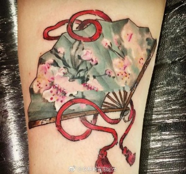 扇子纹身图案 10张彩绘纹身日本艺妓扇子纹身图案
