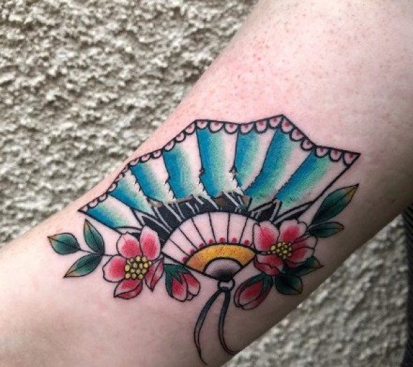 扇子纹身图案 10张彩绘纹身日本艺妓扇子纹身图案