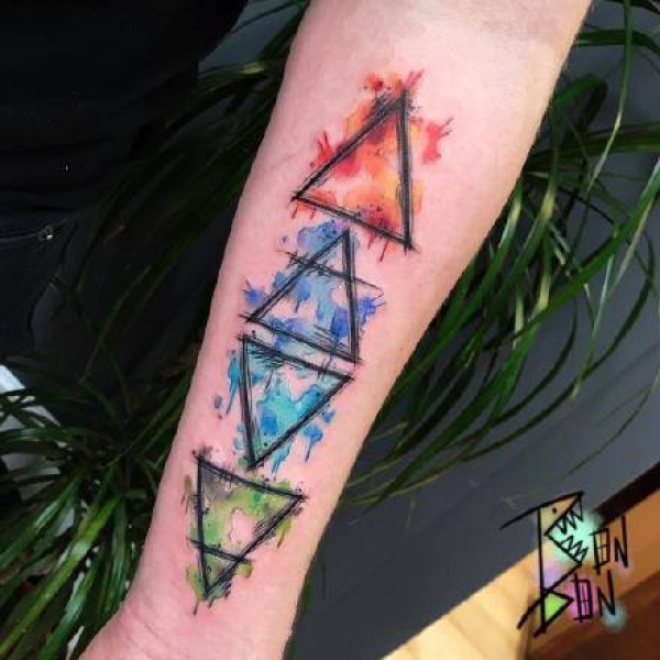 一组大胆的水彩泼墨彩绘技巧渐变纹身图案大全