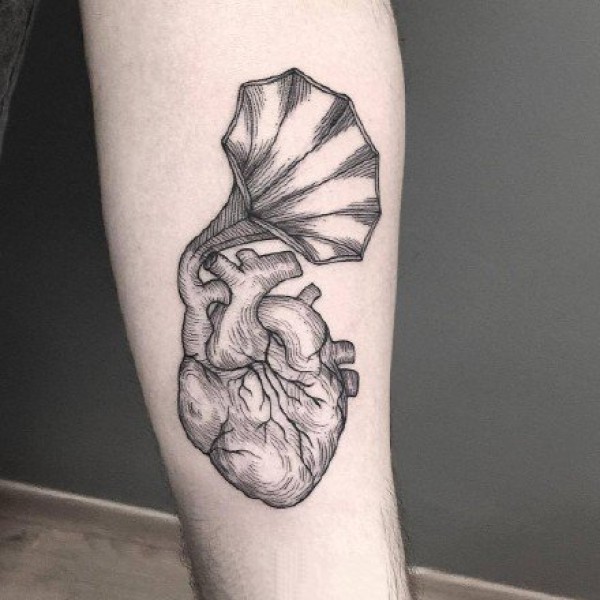 心脏纹身图案 女生手臂上黑灰纹身心脏纹身图案