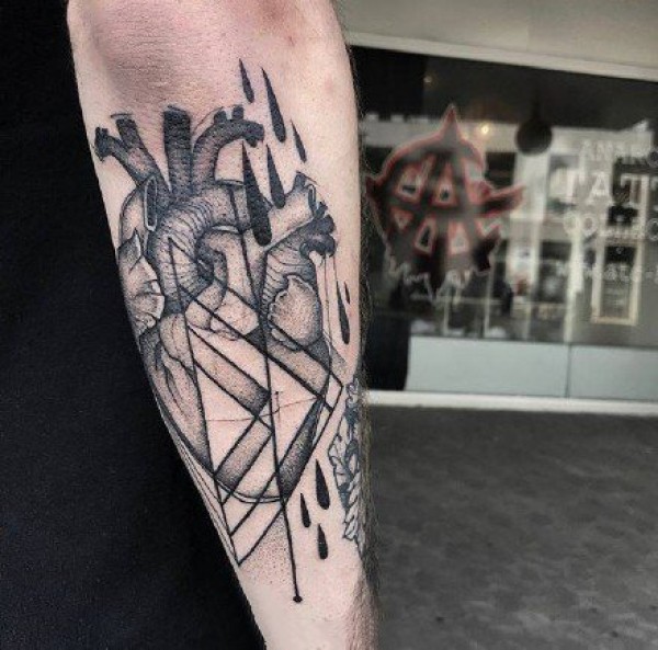 心脏纹身图案 男生手臂上心脏纹身黑色图案