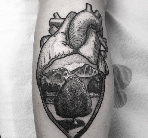 心脏纹身图案 男生手臂上心脏纹身黑色图案