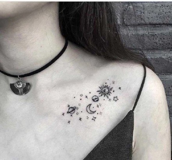 锁骨刺青:纹在女生锁骨处的小清新纹身图案9张