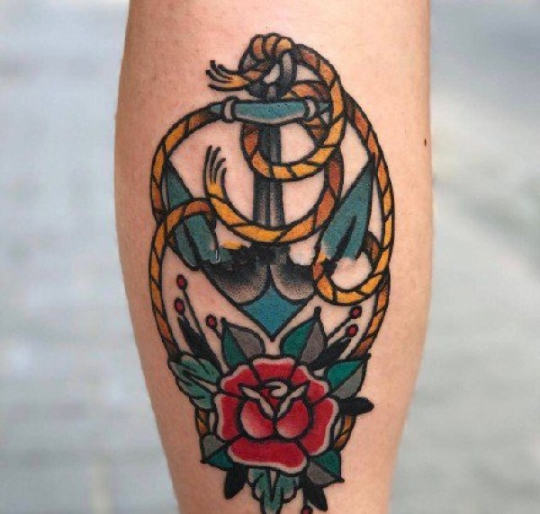 男生纹身船锚 多款简洁大方的船锚纹身图案