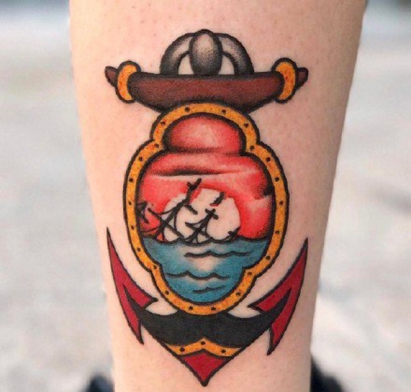 船锚纹身_9张男生比较喜欢的小清新船锚纹身图片作品