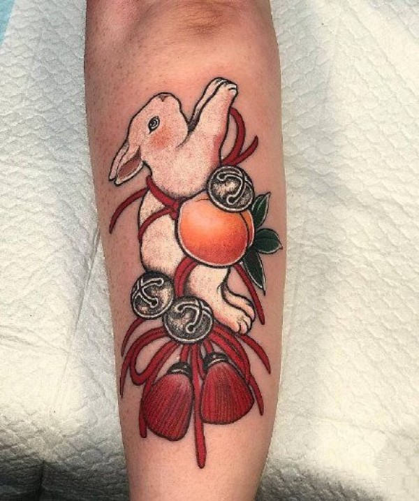 日式风格的传统花腿纹身作品欣赏