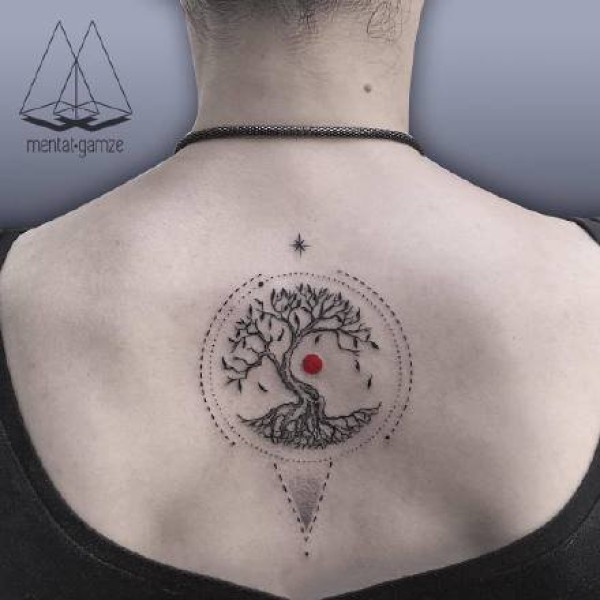 后背带红色小点的一组创意点刺纹身图案