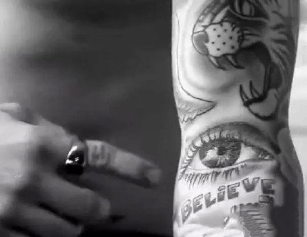 贾斯丁比伯大秀手臂图腾花蕊纹身图案
