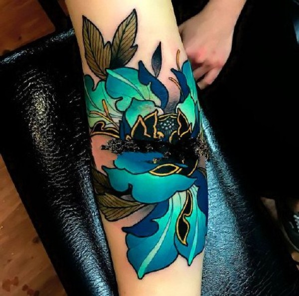 纹身小牡丹 黑色调却不失华贵的牡丹纹身图案