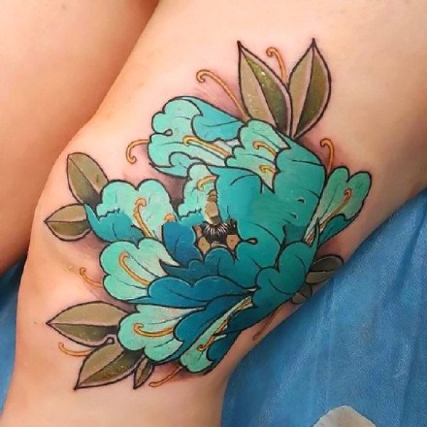 纹身小牡丹 黑色调却不失华贵的牡丹纹身图案