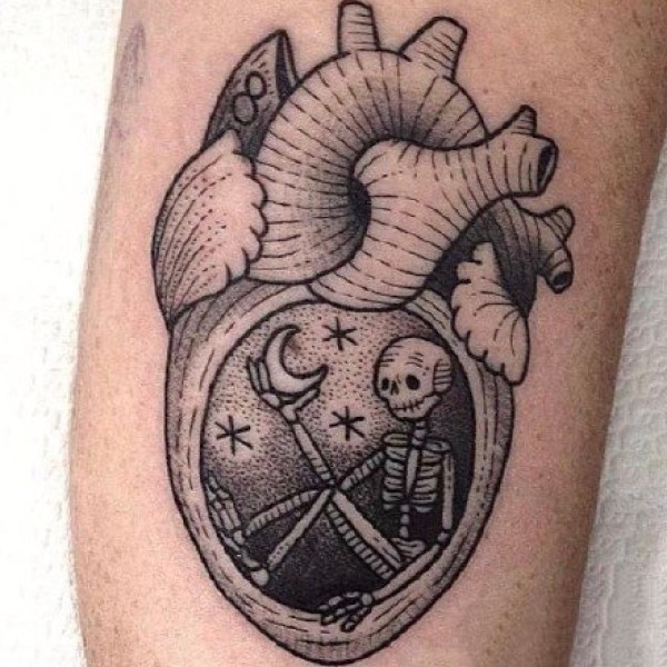 心脏纹身图案 男生手臂上心脏纹身黑色图案