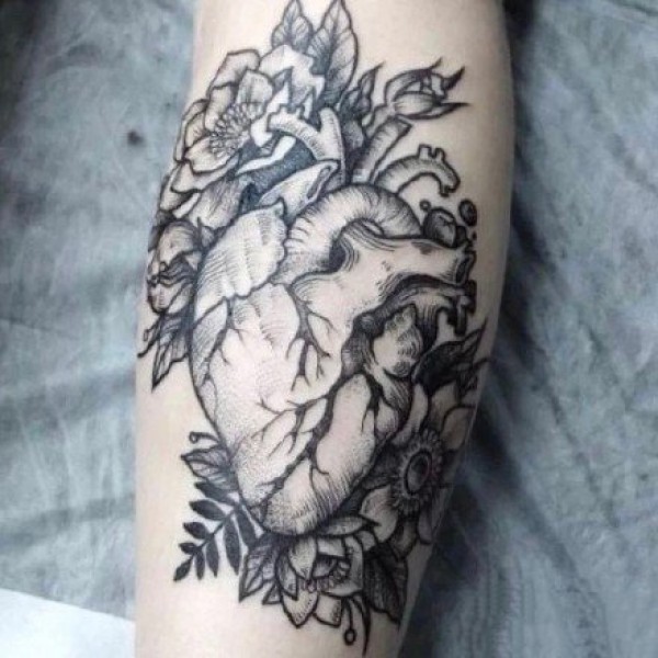 心脏纹身图案 女生手臂上黑灰纹身心脏纹身图案