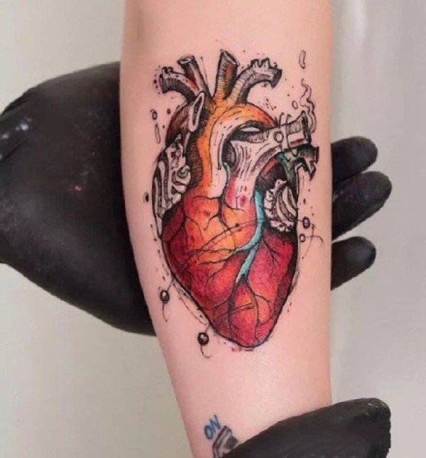 心脏纹身图案 身体各个部位彩绘纹身和写实纹身的心脏纹身图案