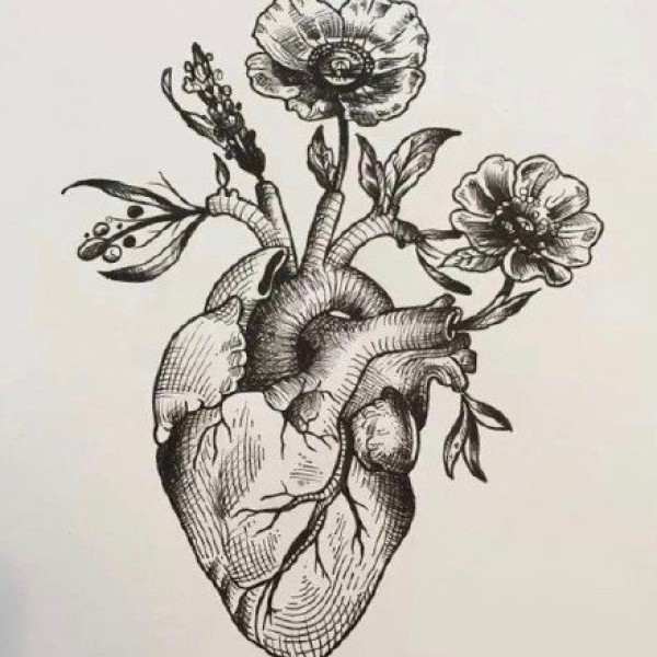 心脏纹身图案 女生手臂上黑灰纹身心脏纹身图案