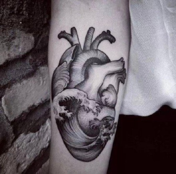 心脏纹身图案 男生手臂上心脏纹身黑色图案