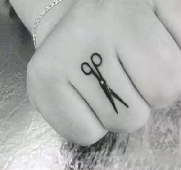 理发剪刀纹身 男生手臂上黑色的剪刀纹身图片