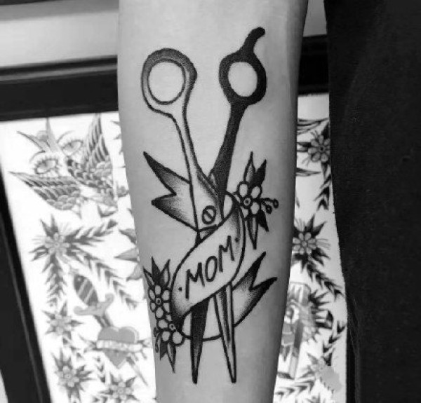 理发剪刀纹身 男生手臂上黑色的剪刀纹身图片