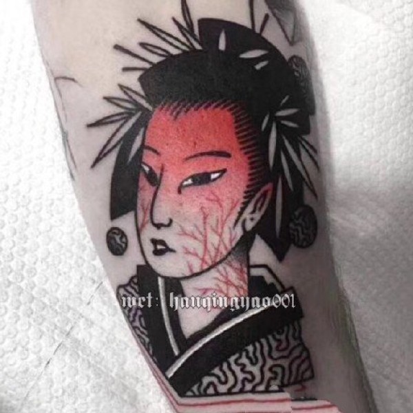 艺伎纹身--一组独特创意的日式艺妓纹身图案作品