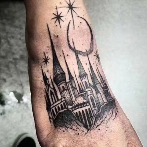 欧美城堡纹身 男生手臂上欧美城堡纹身图片