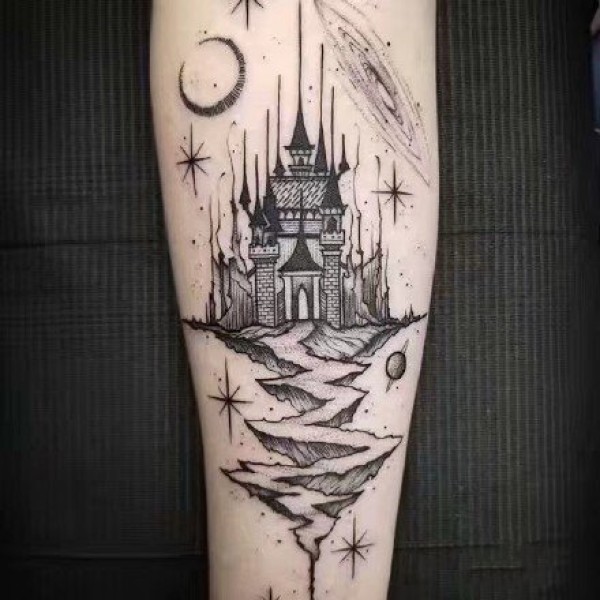 欧美城堡纹身 男生手臂上欧美城堡纹身图片
